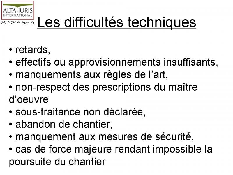 DROIT DE LA CONSTRUCTION : LA DEFAILLANCE DE L'ENTREPRISE